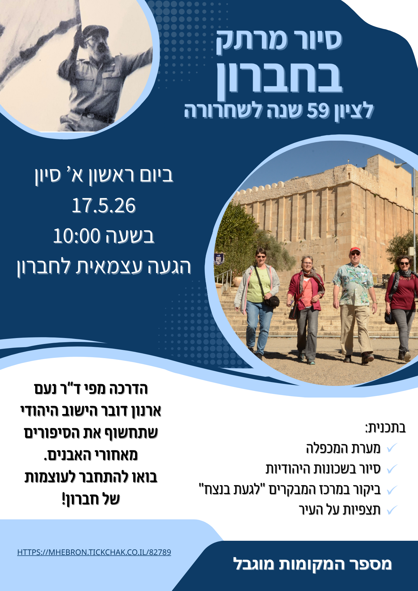 – מסלול מקיף: מערת המכפלה, תל חברון, בית רומנו, מוזיאון בית הדסה, בית כנסת אברהם אבינו